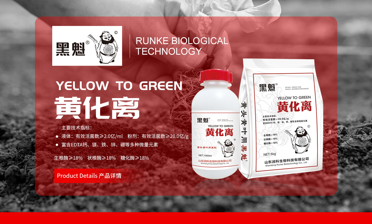 土壤和根系的问题也会导致柑橘变黄。当土壤肥力差或变硬时,根系不能正常生长或受到破坏,不能吸收养分和水分,就会出现半绿半黄的现象,严重时还会脱落。多种蔬菜、瓜果、地下根茎等南北经济作物。使用山东润科生物科技有限公司生产——黄化离,对这种情况有好的表现。